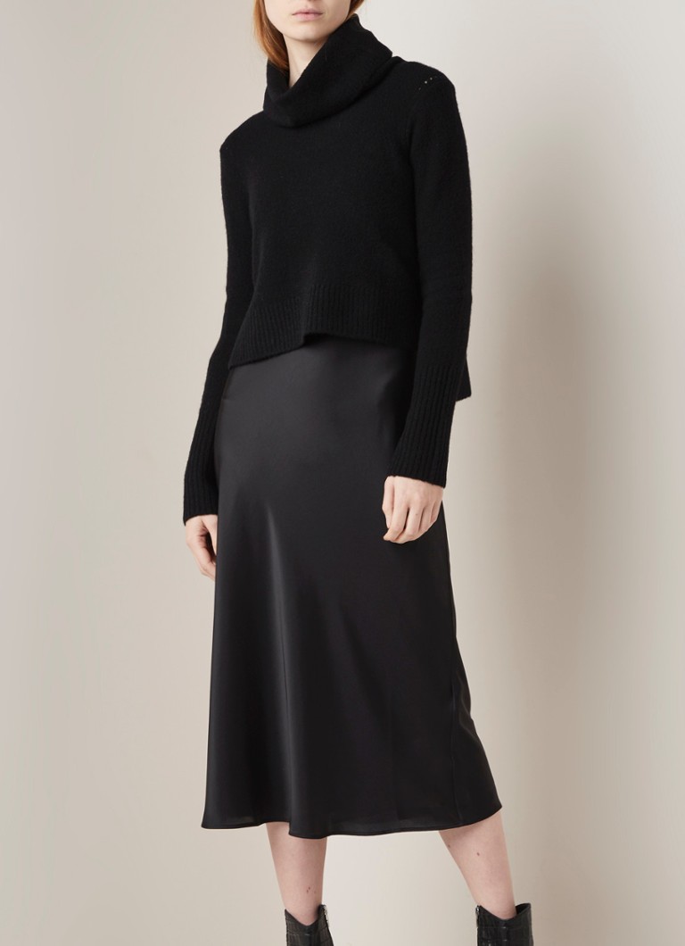 Allsaints Tierny Maxi Jurk Van Satijn Met Coltrui Zwart De