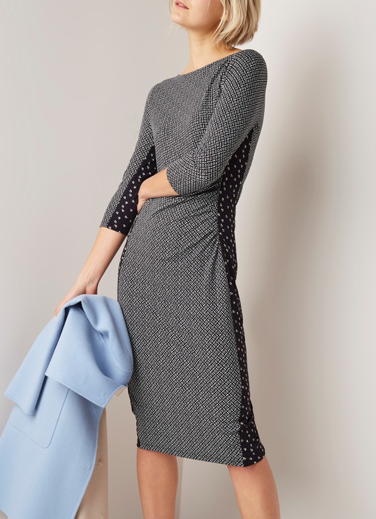 Maxmara Jersey Midi Jurk Met Dessin En Driekwart Mouw Zwart De