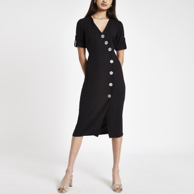 Zwarte Midi Jurk Met Knopen Voor River Island