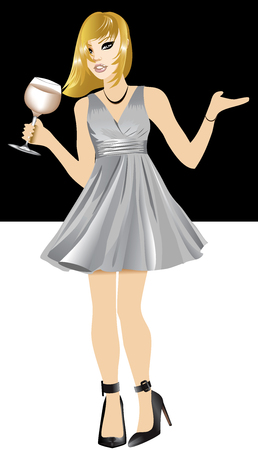 Vectorillustratie Van Zwarte Vrouw Met Oranje Jurk En Bloemen