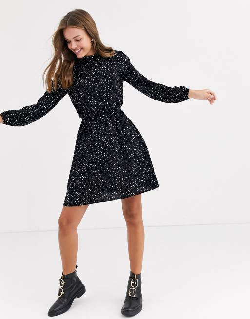 New Look Hoogsluitende Jurk Met Ruches In Zwart Asos