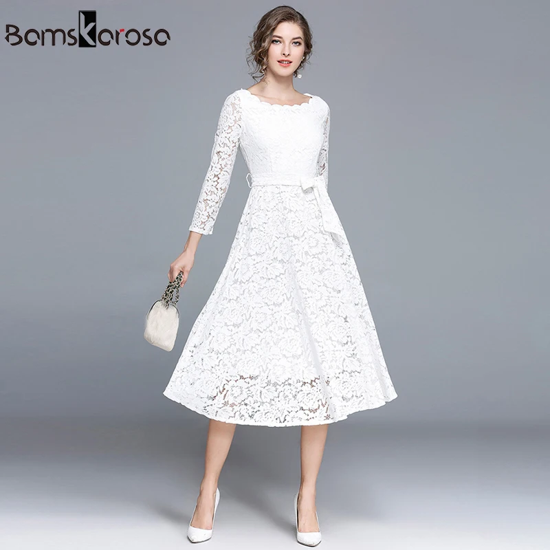 Vintage Jurk Vrouwen Elegante Witte Kanten Jurk Zwarte Avond Party