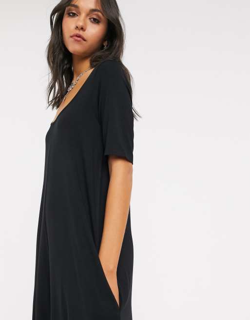 Asos Design Tall Swing T Shirt Dress With Concealed Pockets In
