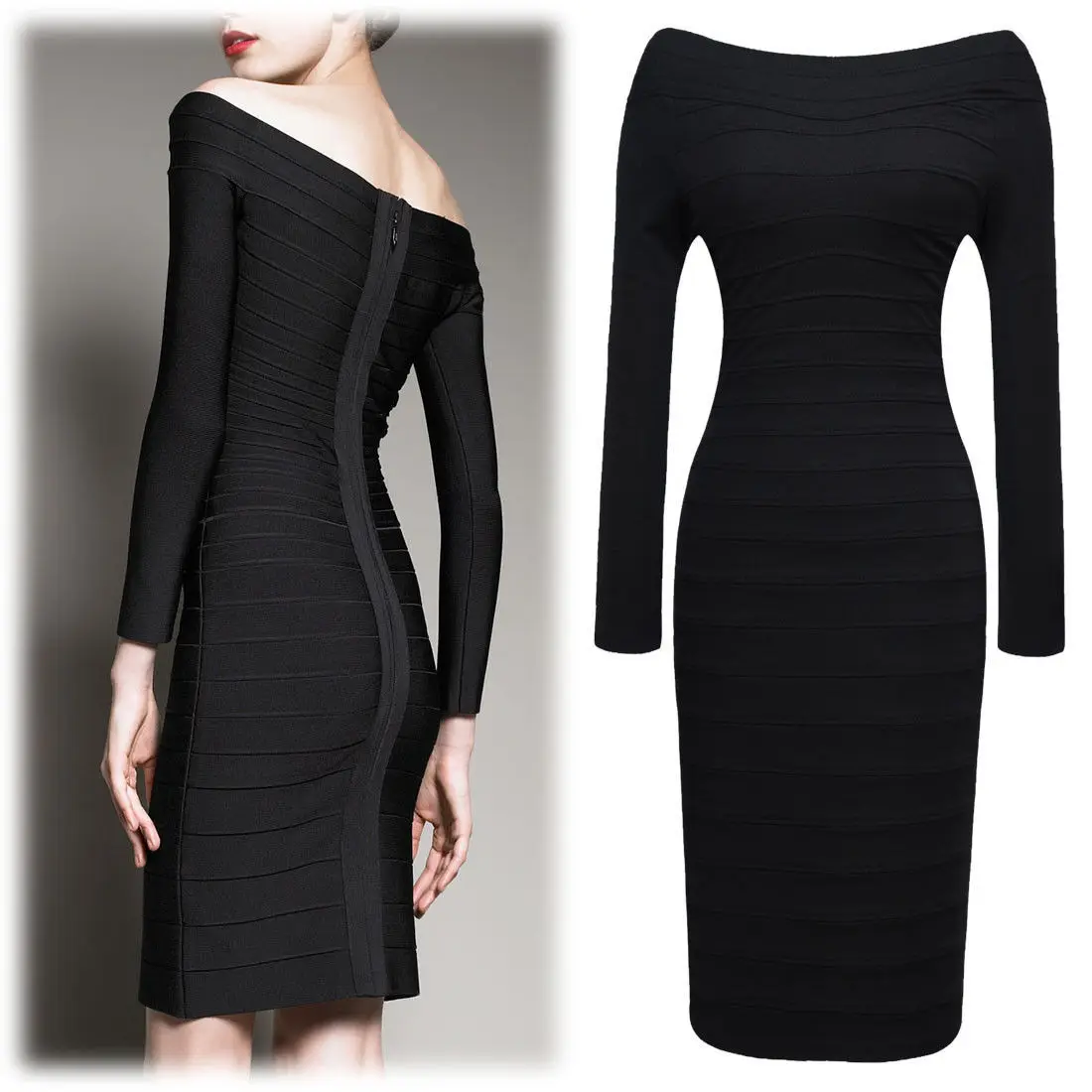 Vrouwen Mini Tricot Jurk Col Kleding Uit Schouder Zwarte Slanke
